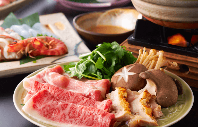 お部屋でお食事をする際も、お好きなコースを選んでいただけます。お食事の量や内容をご予約時にご確認ください。季節毎にコースを変更しておりますので、同じお宿に宿泊する際も、別のメニューをお愉しみいただけます。また、季節限定のコースもございます。