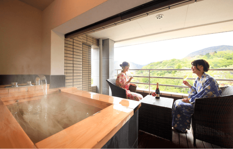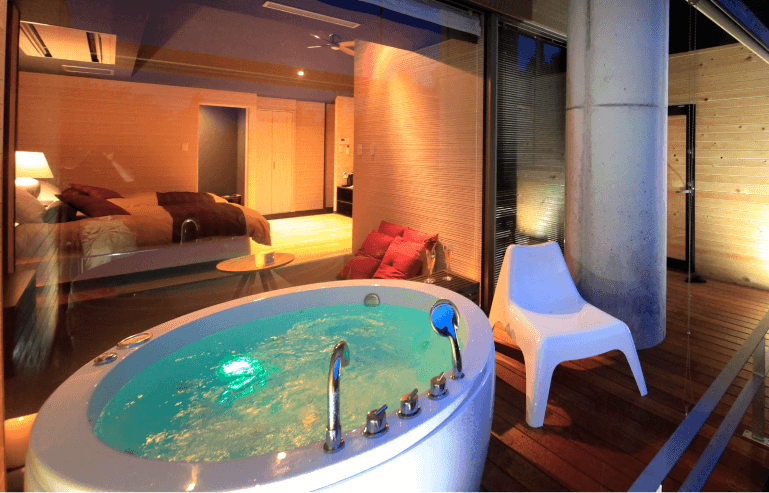 ジャグジー付きの露天風呂で、さらにラグジュアリーな気分に浸れる露天風呂もおすすめです。特に熱海の各施設には全てにジャグジーがついており、海を見ながらリッチな気分が愉しめます。ジャグジーのリラクゼーション効果と共に一層の非日常感をご堪能ください。